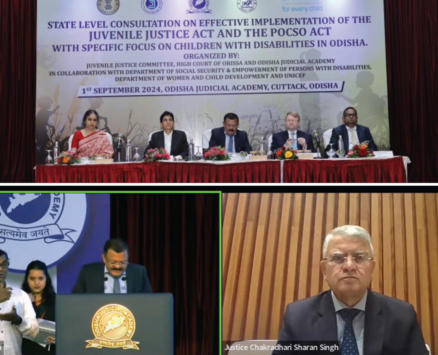 The Juvenile Justice Committee of High Court of Orissa and Odisha Judicial Academy in collaboration with Department of Social Security & Empowerment of Persons with Disabilities, Department of Women and Child Development and UNICEF had organized a State Level Consultation on Juvenile Justice on 1st September, 2024 at Odisha Judicial Academy, Cuttack. The consultation was dedicated to explore the effective implementation of the Juvenile Justice Act and Protection of Children from sexual offences Act, with a specific focus on the rights of children with disabilities.