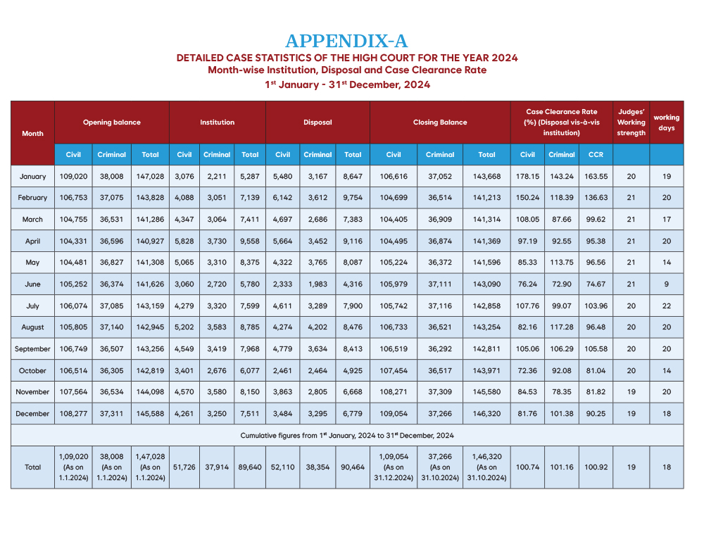 Detailed Case Statistics of the High Court for the year 2024