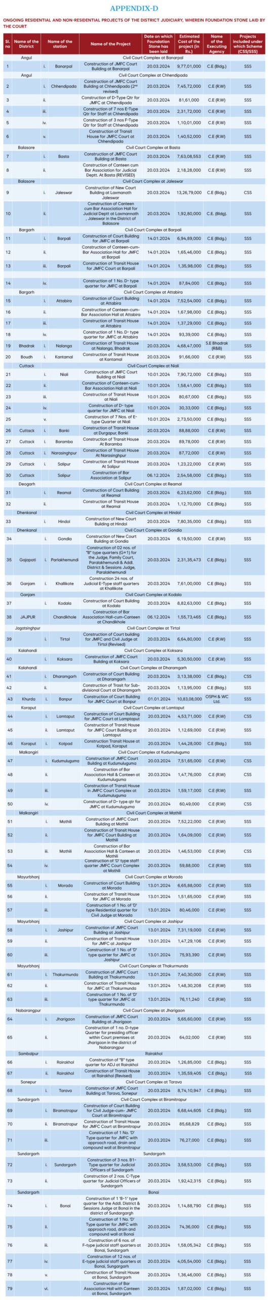 Ongoing residential and non-residential projects of the district judiciary, wherein foundation stone laid by the Court