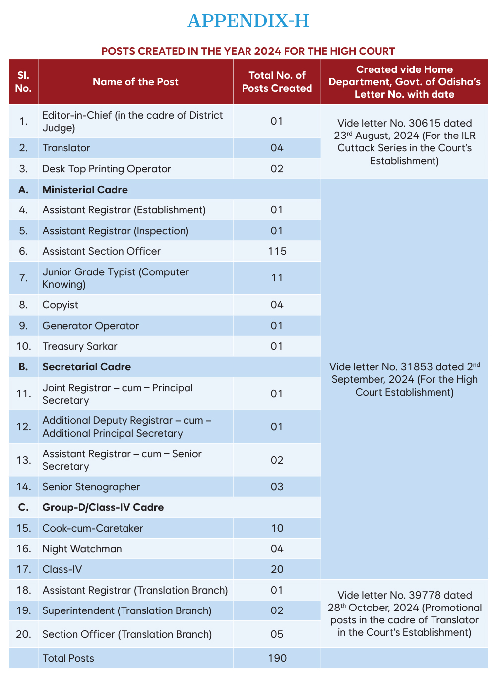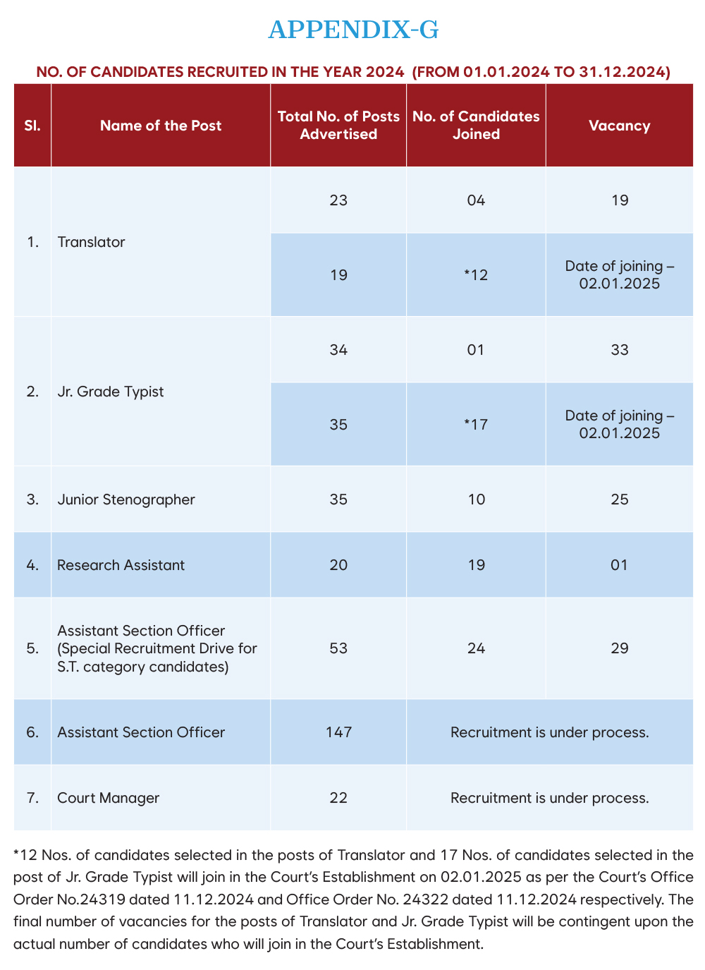 Promotion of employees of various cadres in the High Court in the year 2024.