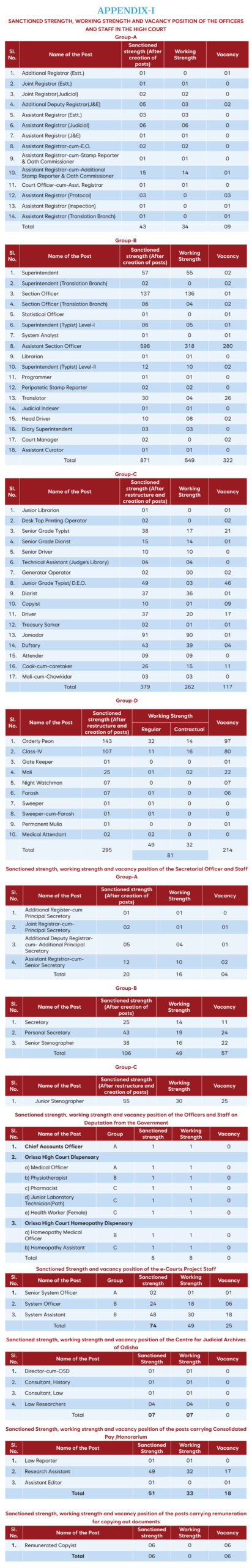 Sanctioned strength, working strength and vacancy position of the Officers and Staff in the High Court