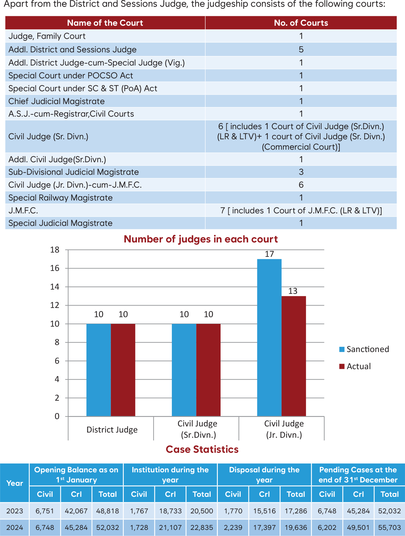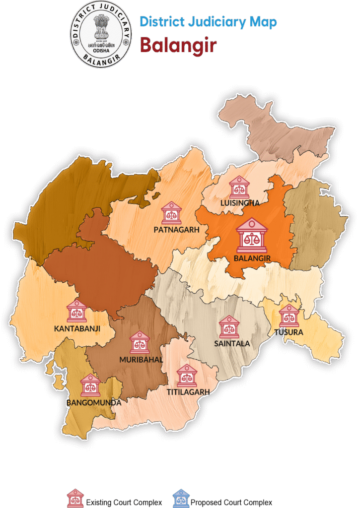 37 different courts are functioning in this judgeship with outlying stations at Kantabanji, Titilagarh, Luisingha, Saintala, Muribahal, Patnagarh, Bangomunda, and Tusara.