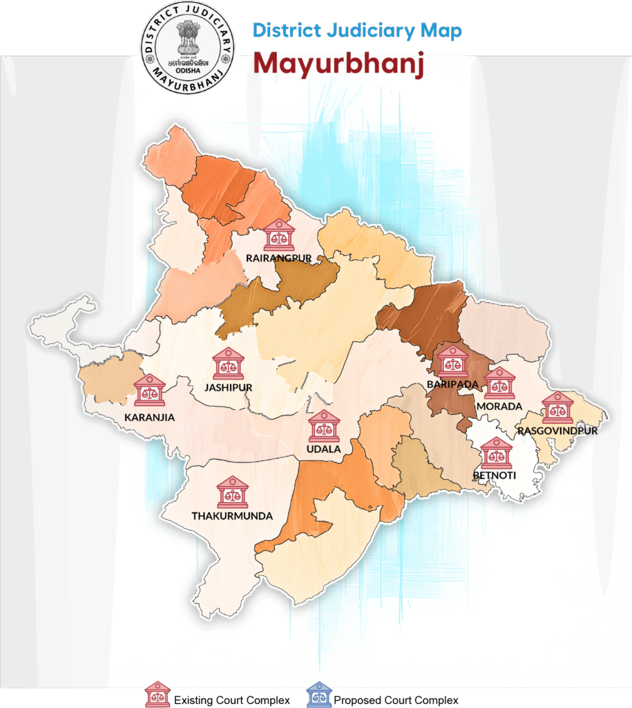 The erstwhile Princely State of Mayurbhanj was merged into the state of Odisha on 1st January, 1949, and the Court of the District & Sessions Judge, Mayurbhanj, was established simultaneously.